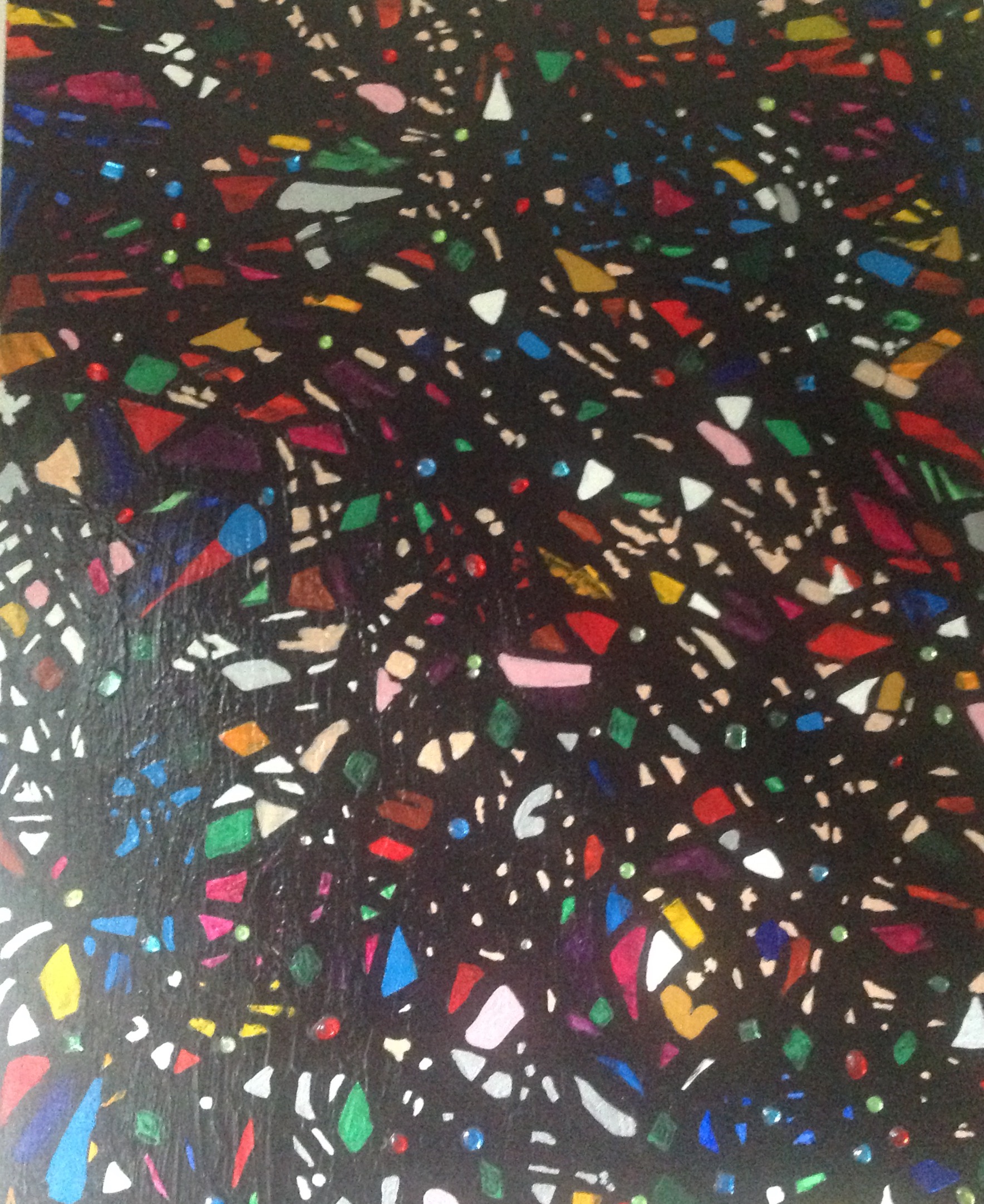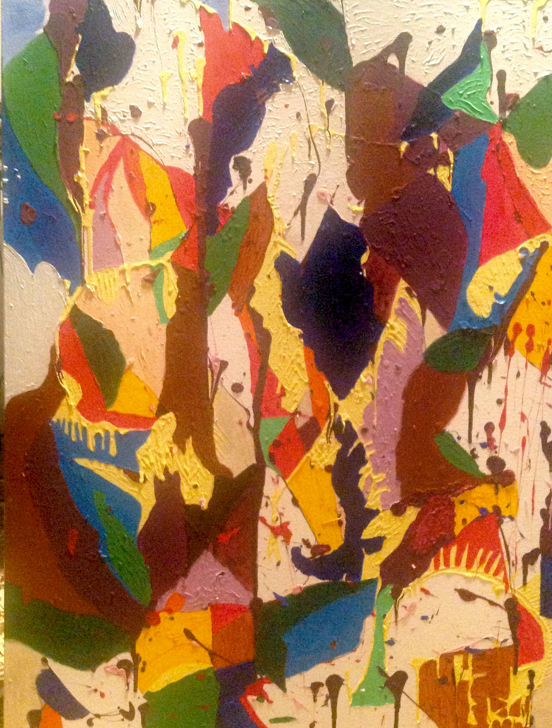 The paintings below are an extension of my art world. They are improvisations that took shape in one of my rooms in my blessed home. I have made a mess everywhere, you might still see a paint splatter or two in each room , if you look hard. I have tried to clean up, but I'm not perfect. My daughter still shakes her finger at me.